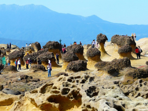 Các mỏm đá ở công viên địa chất Yehliu có những cái tên hết sức ngộ nghĩnh như: Đá Nấm (Mushroom Rock), Đá Nến (Candle Rock), Hài Tiên (Fairy’s Shoe), đá Đầu Rồng (Head Dragon),… và nổi tiếng nhất là hòn Đầu Nữ Hoàng (Queen’s Head).
