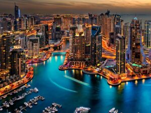 - Vịnh Marina – Bến du thuyền nhân tạo dài nhất thế giới, nơi hội tụ của giới giàu có, Chụp hình Dubai eye – vòng xoay lớn nhất thế giới, cao 250m. Thăm quan đảo nhân tạo Blue Island.
